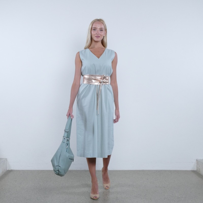 Der Gürtel Flow hat ein schlichtes Design und wird eine schöne Ergänzung zu deinem Outfit sein. Mit diesem Accessoire wird die Taille schön betont. Das Gürtelende wird über eine Schlitzöffnung durchgezogen und gebunden. Man kann den Gürtel mit einem Kleid oder auch mit zu einem Mantel tragen. Das Leder ist weich und nur einfach verarbeitet.