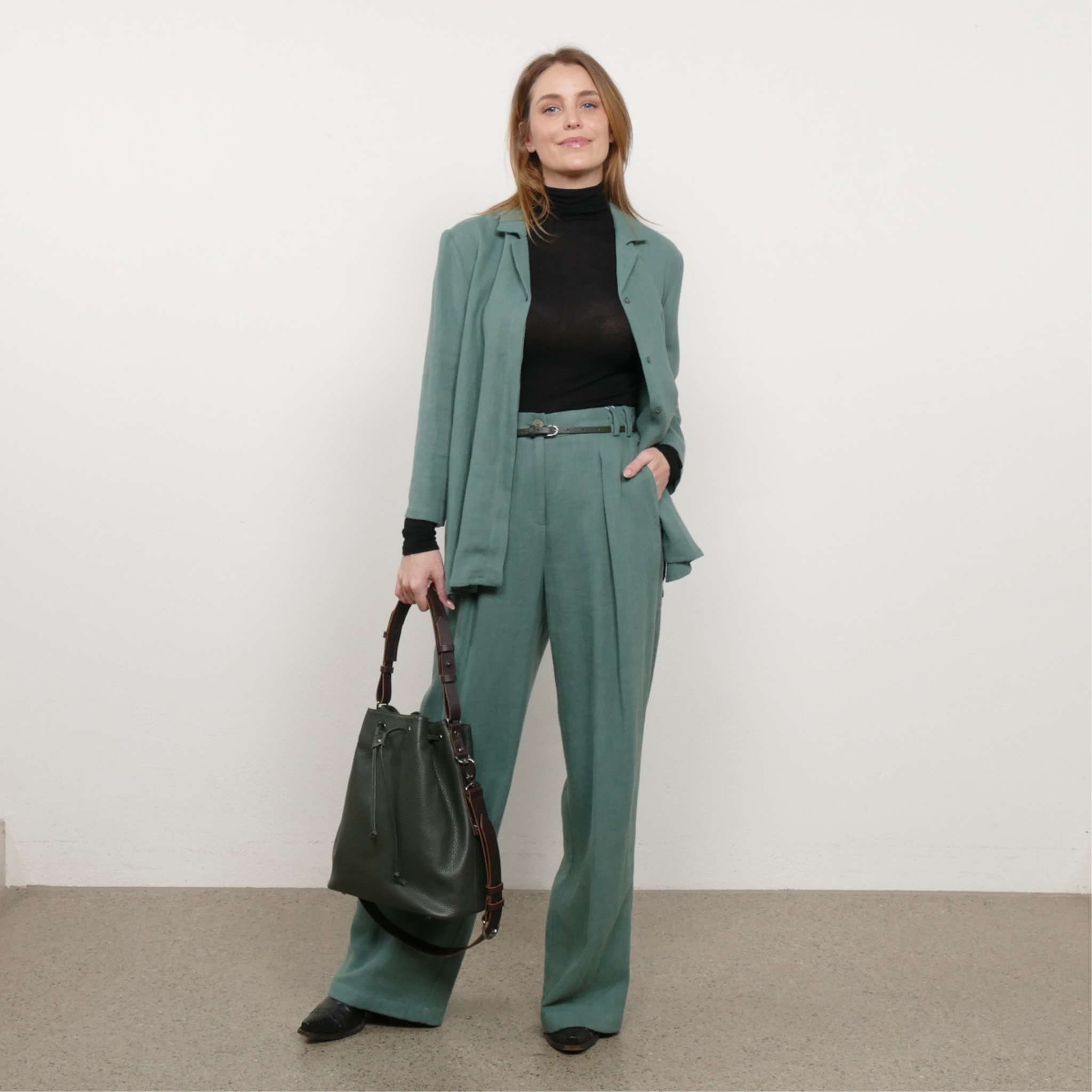 Die Hose Ivy präsentiert sich als wunderbar weites Modell, das hervorragend mit unseren schmalen Tops oder einem weiten Shirt harmoniert. Sie lässt sich ebenso gut mit einer Bluse kombinieren – je nachdem, welchen Look du anstrebst. Hose Ivy besticht mit einem 4 cm breiten Taillenbund sowie Gurtschlaufen, die perfekt für unseren schmalen kleinbasel by Tanja Klein Gürtel Solo wie auch für den breiteren Gürtel Cintura sind. Die geräumigen Taschen bieten ausreichend Stauraum und auf der Rückseite befindet sich eine Gesässtaschen. Mit ihrem lässigen Schnitt und den praktischen Details ergänzt die Hose Ivy deine Garderobe auf perfekte Weise.