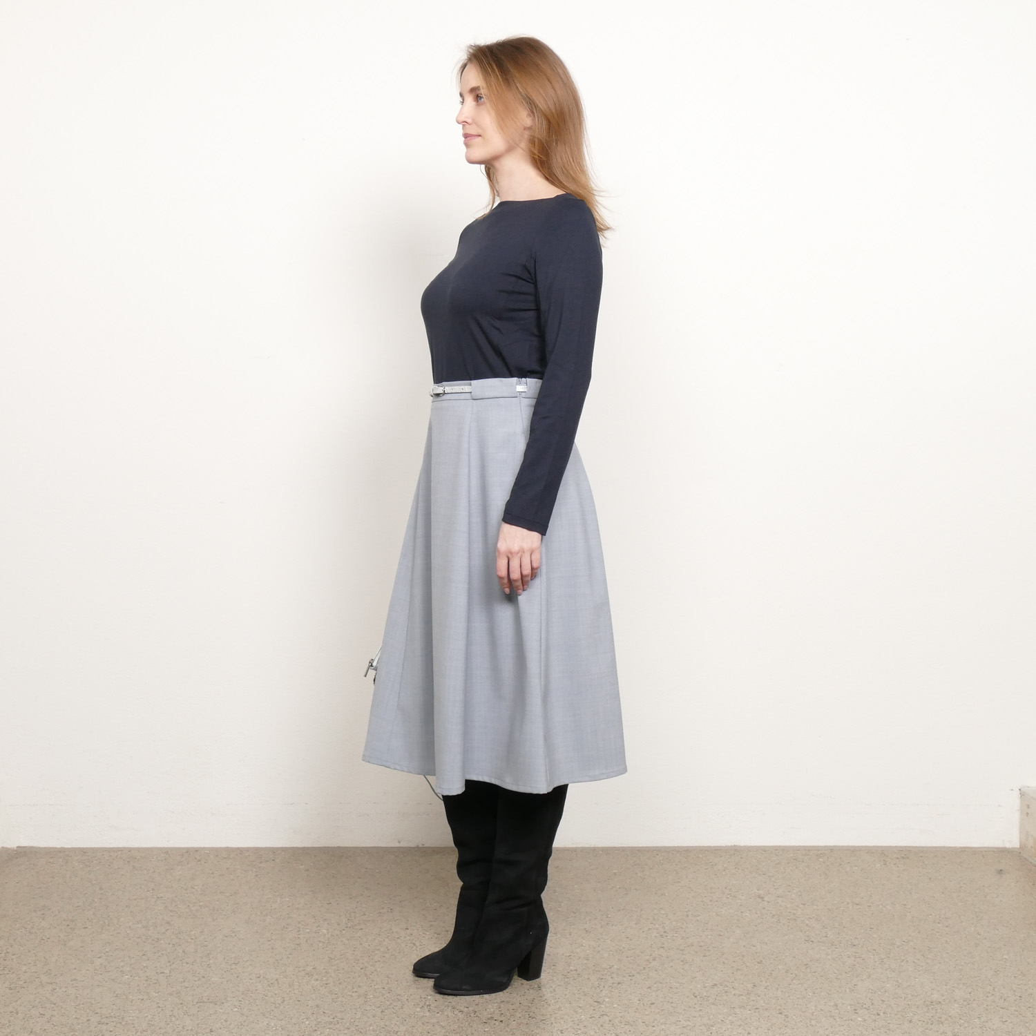 Hier haben wir einen wunderschön ausgestellten Jupe namens Lissy. Der Jupe bietet bequeme Seitentaschen und Gürtelschlaufen, die perfekt zu einem kleinbasel by Tanja Klein Gürtel passen. Du kannst ihn entweder lässig mit einem schlichten T-Shirt oder eleganter mit einer festlichen Bluse kombinieren. Ein vielseitiger Begleiter für jeden Anlass.