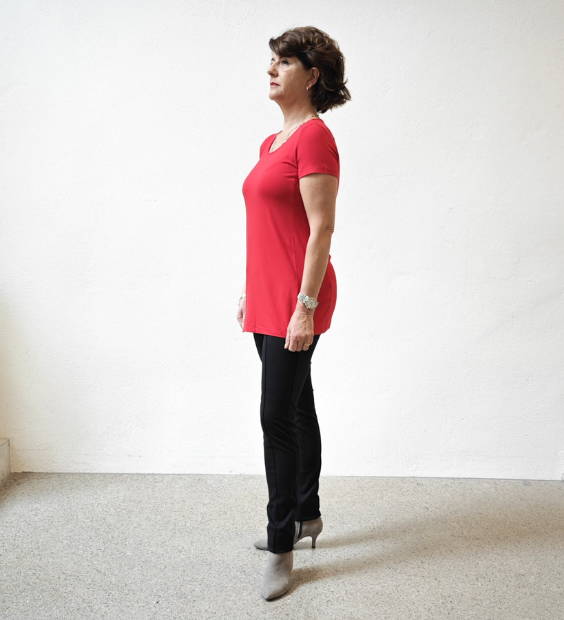 Dieses kurzärmelige, körpernahe T-Shirt ist ein wahrer Blickfang! Mit Flankennähten im Vorder- und Rückenteil und ohne Seitennaht bietet es eine besondere Passform.