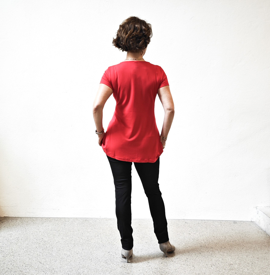 Trage es lässig in die Hose gesteckt oder zu einem schmalen Rock für einen eleganten Look. Dank seines körpernahen Schnitts passt es auch perfekt zu engen oder weiten Hosen, was dir vielfältige Kombinationsmöglichkeiten bietet.